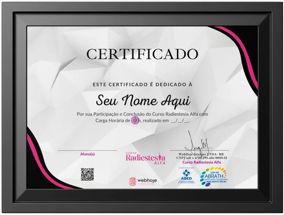 Com o Curso de Radiestesia, você não apenas aprimora suas habilidades na arte da harmonização energética de forma única, mas também recebe um Certificado de Conclusão reconhecido e valorizado em todo o mercado brasileiro. Celebre sua conquista com um documento elegante que valida seu esforço e compromisso, disponível imediatamente para baixar logo após a conclusão do curso.